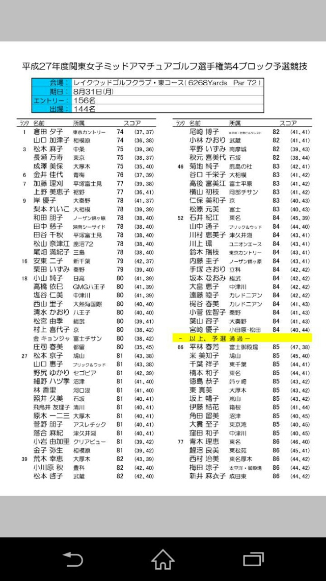 トップは庄田さんの66(凄過ぎ^_^;)