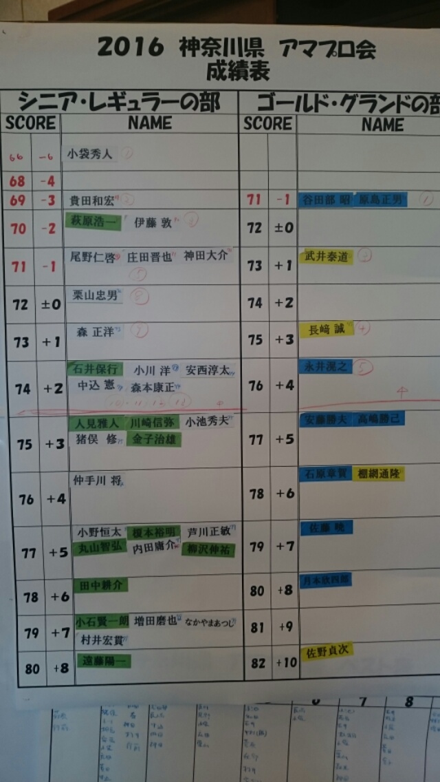 66ストロークが優勝。74ストロークまでが賞金。