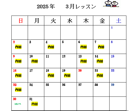 3月14日(金)午後の部のレッスンを14:00から15:00とさせてください。