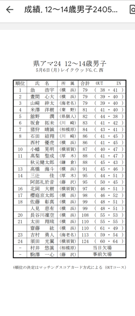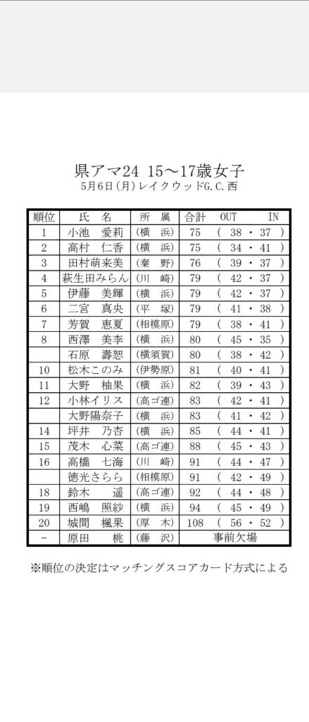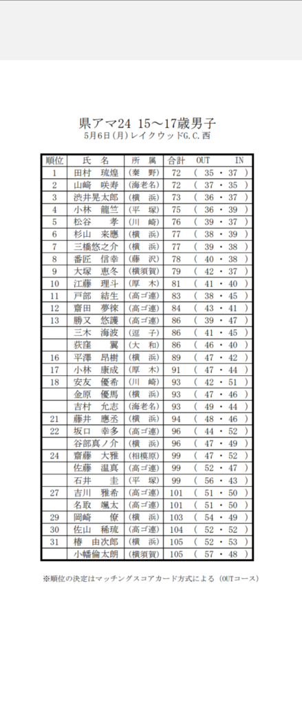 本日神奈川県アマ中学生の部と高校生の部がレイクウッド西コースで行われてました。