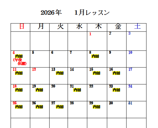 1月4日(日)午前のみレッスン。午後は休講です。